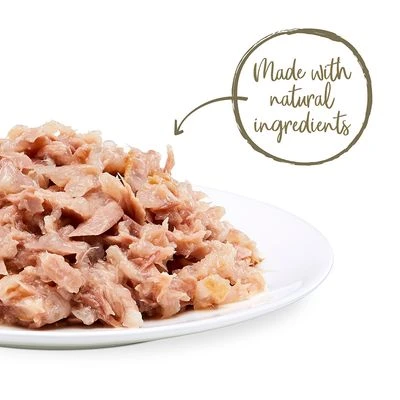 Premium supplementary cat food made from 100% natural ingredients, in practical fresh pouches with no additives, made with chicken from free-range birds and fish from sustainable fishery.
