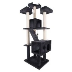 There is another ring-shaped platform near the bottom of the tree to make it easier for older cats to make the step up, as well as providing three further platforms to perch on and increasing the stability of the tree as a whole. In order to satisfy your cat’s natural instincts, the tall trees are covered in sisal to provide a wonderful surface for your cat to scratch and sharpen its claws on. This will spare your furniture, carpets, and wallpaper, and also let your cat stretch out.