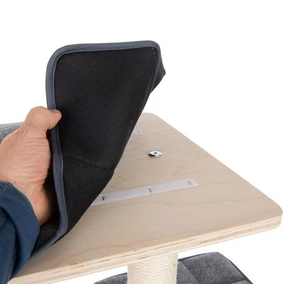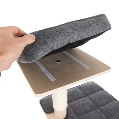 The Cairo Cat Tree Promotes extensive scratching and stretching. For this purpose, natural wood trunks are used, which are partly wrapped with sisal. Your cat can make themselves comfortable in the spacious little house, in the comfortable bed, on the viewing platform or in one of the two hammocks. The upholstery of the cat scratching post is made of easy-care furniture fabric and can be easily removed.