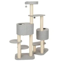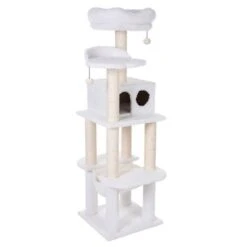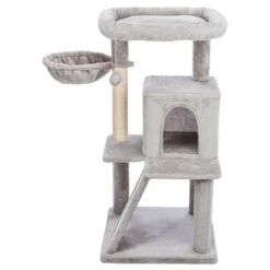 The base is made from solid wood so the Natural Home IV cat tree is very stable. The various posts are sisal-covered so your cat can enjoy lengthy claw-scratching sessions. And if this is not enough, there are also cute little toys dangling from the platforms.