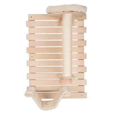 Tips for fixing to the wall:Â Check that the condition of the wall in the desired place is suitable before affixing the board to the wall. Materials for mounting are not included. We recommend that you purchase screws and wall plugs that are specifically designed to suit your wall from a specialised shop. Use special wall plugs and screws for concrete, hollow walls or plasterboard. Check the stability of the board before allowing your cat to use it. Check the stability regularly and tighten the screws when needed.