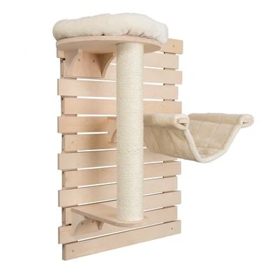 Wall-mounted scratching board for cats, made from birch wood, accessories can be mounted as you wish, hammock and soft bed, long sisal post, Oeko-Tex® upholstery, saves space, height: 110cm