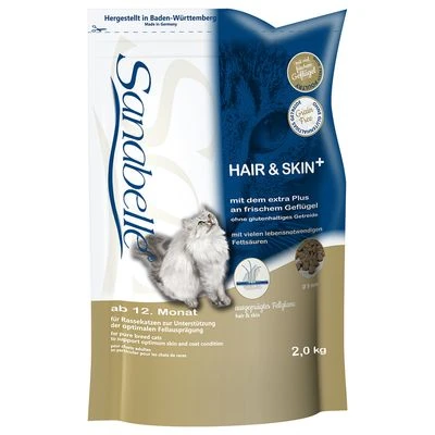 Sanabelle Hair & Skin is a balanced dry food for adult cats. It is made with carefully selected ingredients which help to keep your pet’s skin healthy and fur shiny. It contains lots of valuable oils and fats which are a source of essential unsaturated fatty acids including omega 3 and omega 6. A special combination of vitamins and trace elements, together with the oils and fats, help to keep the skin soft and supple and the fur thick and shiny. Sanabelle Hair & Skin dry cat food is suitable for all breeds of cats.