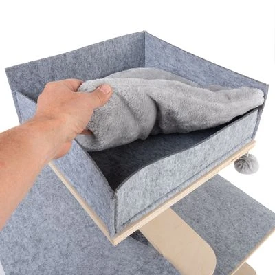 - Robust artificial felt upholstery: with a surface ideal for sharpening claws
