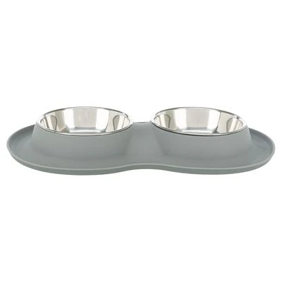 The practical Trixie bowl set consists of two bowls for food and water and is combined with a non-slip base. This ensures that the bowl stays in place even on smooth floors and does not scratch the floor. Both bowls are made of hygienic stainless steel and are therefore very robust, easy to clean and dishwasher safe .